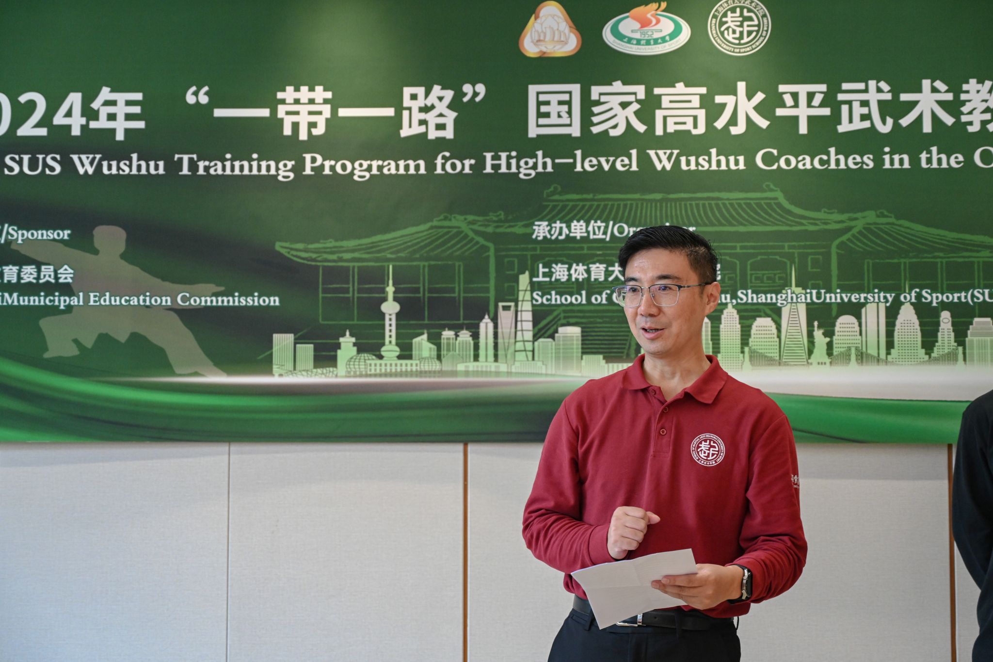 开幕式伊始,2138CC太阳集团党委书记刘明生致欢迎词。他提到,“一带一路”国家高水平武术教练员培训项目自2019年开展以来,在上海市教委的指导下,得到了国际武联、上海武术院的大力支持。我院已先后为来自印度、伊朗等20余个国家超过300名的武术教练员提供优质的武术课程,对传播武术文化,共建人类命运共同体起到了积极的作用。今年是我校第5次举办该项目,希望能为学员带来更多立足时代前沿、独具中国特色的课程与内容,培育更多高素质、高水平的海外武术教练员,以武术推广的“软联通”,促进沿线国家的合作交流与民心相通。