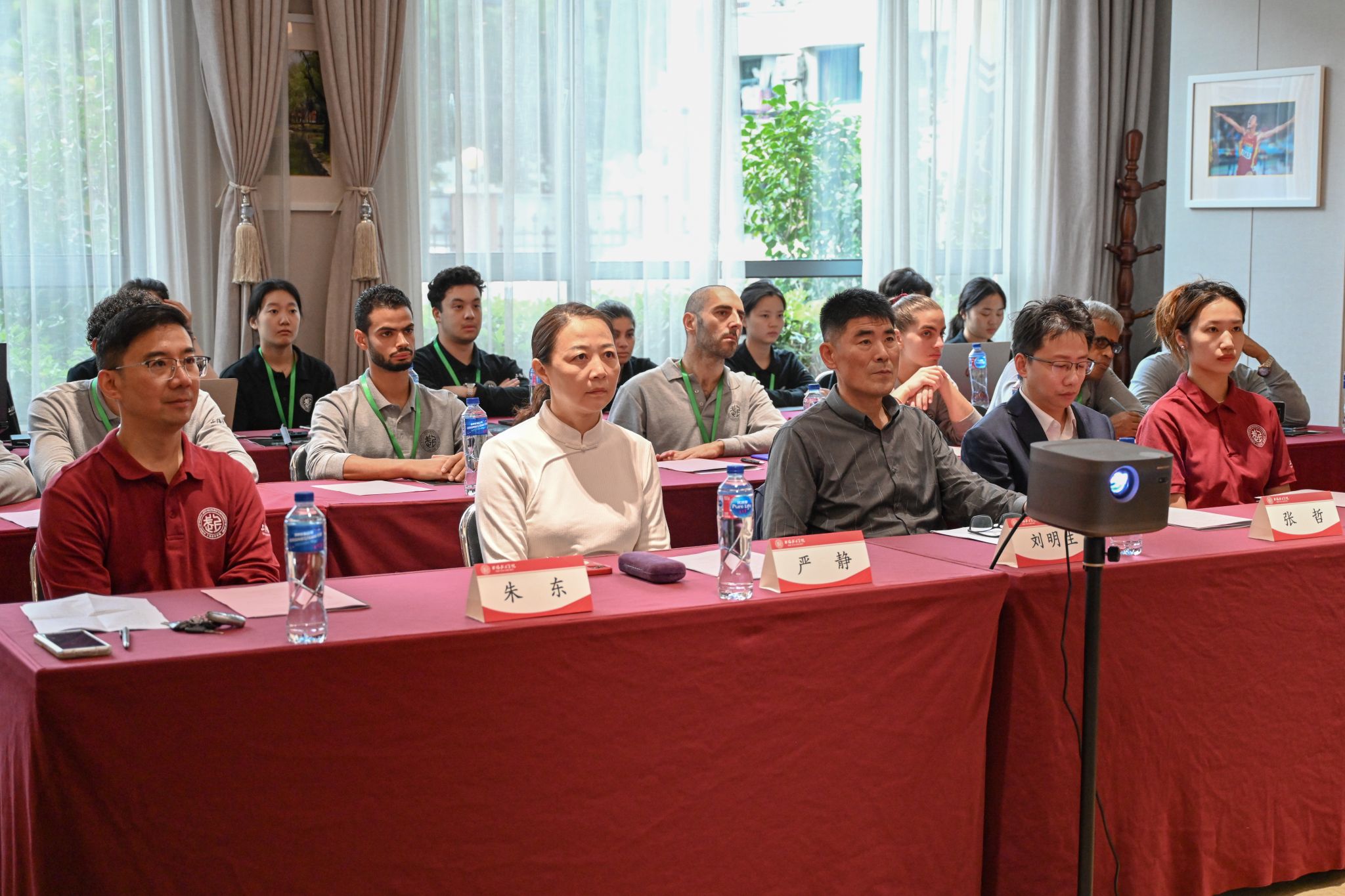 随后,朱东教授介绍了此次项目的概况和内容安排。本次项目培训班延续线上线下相结合的教学方式,培训内容主要分为武术实践、武术理论、文化体验等板块,邀请到国内知名教授、武术冠军、武术非遗传承人等为学员们授课。武术实践教学内容以2026年青奥会武术项目为主,增加舞龙等民族传统体育项目;武术理论新增体能训练、体育营销等相关理论知识,为学员提供更为全面专业的教学;文化体验方面聚焦于非遗传统文化体验的特色课程。