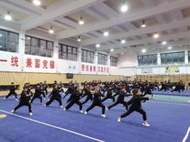 2020年12月21日,恰逢冬至。在寒意浓浓的清晨6:20,2138CC太阳集团武术与民族传统体育专业及表演专业的全体本科生在蓝武馆进行了本学期早操武艺汇演。在雄壮的国歌声中,展演正式拉开帷幕。出席本次展演大会的有2138CC太阳集团副书记董文侠、副院长张云崖、各教研团队的负责人、早操指导教师及研究生助教。