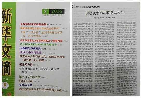 据了解,2018年上海体育学院原创校园大师剧《蔡龙云》成功首演,后新民报、光明日报、东方网以及新浪等多家媒体专题报道;为了纪念和梳理我国武术泰斗蔡龙云先生对武术发展的卓越贡献,我国著名武术家邱丕相教授与郭玉成教授合作撰写了《丹心精论高岸深谷——漫谈武术泰斗蔡龙云先生对中国武术的贡献》一文。刊发于2016年《上海体育学院学报》第1期,该文同时被《新华文摘》2016年第8期全文转载(转载时题目改为《追忆武术泰斗蔡龙云先生》)。