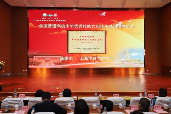 大会举行“全国普通高校中华优秀传统文化传承基地(武术•华东地区)授牌仪式”。国务院学位委员会体育学学科评议组召集人、上海体育学院院长陈佩杰代表全国普通高校中华优秀传统文化传承基地(武术),授予集美大学全国普通高校中华优秀传统文化传承基地(武术·华东地区)牌匾,并希望集美大学以基地建设为契机,积极推进华东地区的武术教育改革、拳种挖掘、科学研究、赛事组织等工作,充分发挥武术在讲好文化故事、展示文化魅力、传承文化基因、弘扬文化精神中的示范、引领、辐射作用,持续推动中华优秀传统文化在助力中华民族伟大复兴进程中的更高水平传承、更高效率传播、更高质量发展。