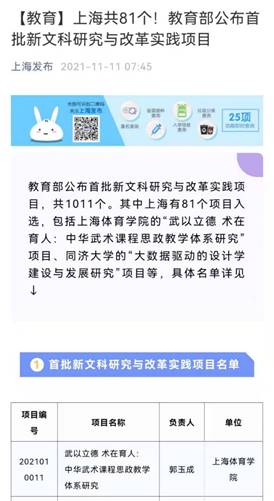 获批武术领域全国唯一教育部新文科研究与改革实践项目