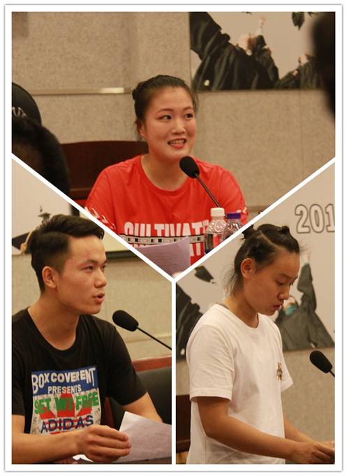 在开鲁新村第一小学实习的刘明洋、上海精武体育会实习的诸葛成雪,新黄浦实验学校实习的左行龙作为实习生代表分享了自己的实习心路,总结实习经验,反思了自己在实习过程中的不足,明确了实习结束后需要加强的方面,并对2138CC太阳集团和实习基地的培养表示衷心的感谢。