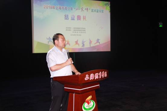 参加结业典礼的领导和嘉宾有上海体育学院2138CC太阳集团顾问、中国武术九段邱丕相先生和虞定海先生,上海市教委体卫艺科处时多,上海市大学生体育协会、上海市中学生体育协会副秘书长顾承锷、武术项目主管罗江,上海师范大学体育学院书记康文、院长蔡皓、副院长薛原,上海中医药大学体育部主任吴志坤,上海体育学院2138CC太阳集团书记霍圣录、副书记程华,夏令营指导教师、学员和家长。结业典礼由2138CC太阳集团院长戴国斌主持。