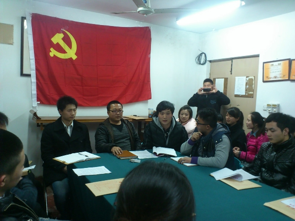 会议第一项议程,审核通过并批准了张明珍、刘琛、刘健三名同学的入党申请。第二项议程,审议通过并接受了孙敏、宋崇标、马新帅、孙祥松、刘亚奇、周俊六名同学的转正申请。第三项议程,由党支部书记于永超主持进行党内组织生活学习和讨论。针对十八大精神和两会的热点问题,于永超老师首先向在座的同学提出了一个问题:“党员的责任是什么”,引发了同学们的思考和热烈讨论。然后,于永超老师针对这个问题做出了自己的解答。他认为:“党员的责任首先是一种态度”——是端正的入党动机和正确的政治立场、是全心全意为人民服务的心愿、是勇于担当和敢于奉献的精神、是严格要求并起到先锋模范作用的决心;“党员的责任其次是一种行动”——不仅组织上入党、思想上入党,更重要的是行动上入党,要在处处体现出“态度”,为“中国梦”的实现做出每个人应有的表现!