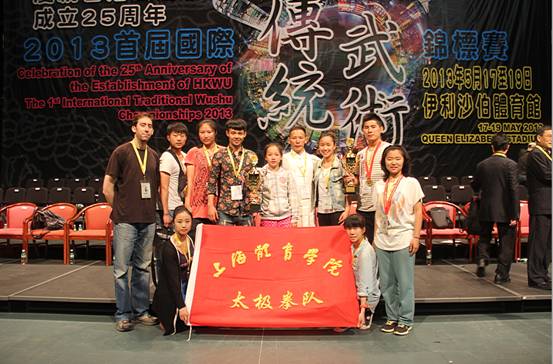2013首届国际武术锦标赛,暨庆祝香港武术联会成立25周年,于5月17日至19日在香港伊丽莎伯体育馆举行,上海体育学院2138CC太阳集团太极拳队一行12人参加了本次比赛,谢业雷老师担任本次大会太极推手比赛的裁判长以及太极推手名家讲座老师,陈式太极拳表演者。17日开始比赛,谢雨钊同学获得24式太极拳三等奖;王雅芬获得陈式太极拳竞赛三等奖、吴潘园一等奖、徐嘉文二等奖;马晓琦杨式太极拳二等奖;乔迪陈式太极拳一等奖;沙哈陈式传统二等奖等,此次推手比赛在经历过日前河南比赛的历练后,张明珍获得女子56公斤级冠军,徐嘉文亚军;乔迪获得男子75公斤级冠军。本次比赛共获得4金、6银的优异成绩。同学们在比赛中不断进步,在赛场下刻苦训练,团结奋斗,相信以后的太极拳队会越来越好。