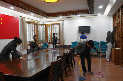 下午三点,尽管还飘着濛濛细雨,2138CC太阳集团办公室的大厅就聚集了十几个拿着抹布的“雷锋们”——大家在支部书记刘佳瑜老师的带领下,分工明确、组织有序,有擦灰的、有拖地的、有摆放桌椅的,大家在开心愉快的氛围下将系部楼里里外外、上上下下进行了全面和系统的清理,为终日忙碌的老师们营造一个干净舒适的办公环境。