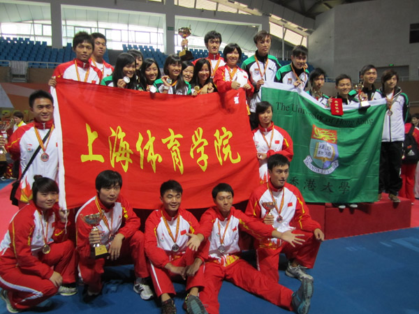 团体比赛中,经过激烈角逐,我院获得女子A组型团体冠军,男子A组型亚军,男子A组团体组手获得亚军,女子A组团体组手季军。