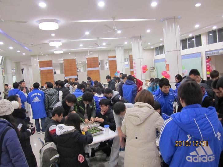 2010年12月31日晚7点,由2138CC太阳集团党总支发起,研究生会和学生会共同承办的,以“热热闹闹包饺子,快快乐乐迎新年”为主题的2138CC太阳集团迎新年包饺子比赛在第三餐厅隆重举行。本次比赛从本科生2010级到2008级以及研究生2010级共10个班级一百多人参与,辅导员及班主任代表作为嘉宾出席。通过“三分钟速包饺子”以及“创意饺子”两轮,各参赛班是八仙过海,各显神通,经过嘉宾的评定排出了名次。最后,包好的饺子由食堂的师傅帮忙煮好,所有同学和老师一起品尝了热气腾腾的饺子,欢度新年。