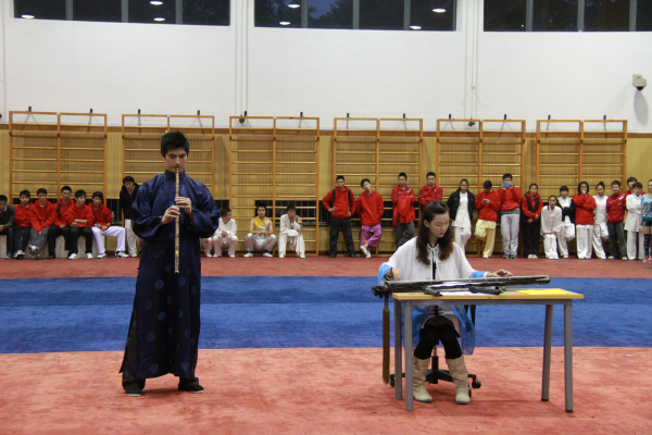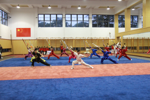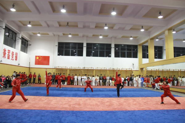 套路教研室选送的《刀光剑影》在激情澎湃的音乐中,节目展示了包括拳法、刀法、剑等众多的武术经典套路或动作,带动全场师生心中升起一股豪情之气。