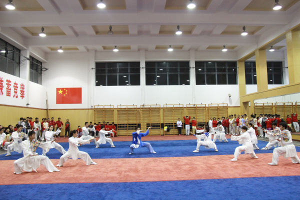 当所有人以为精彩就此打住的时候,我院参与校庆典的节目《极境》的闪亮登场又再次将全场气氛推向高潮,动与静的完美结合,禅与武合的二为一,阐释了别具一格的禅武精神。太极、集体剑、双人剑、集体拳、精彩的对练一个又一个的亮点让全场观众为之折服,为之赞叹,也为本次才艺汇演画上了圆满的句号。
