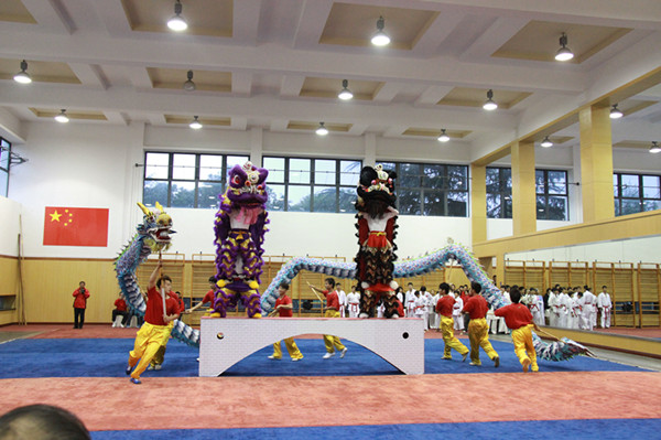 整场节目紧凑而不失热烈。技击教研室选送的节目《唐手之道》在一种震慑全场的霸气中展示了空手道的套路、技法和对练;