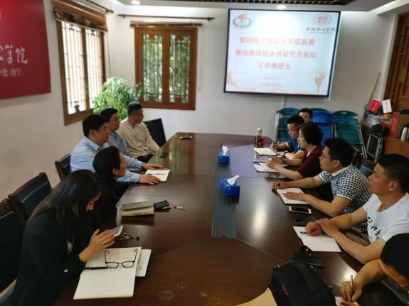 5月13日,第四届中国武术非物质文化遗产展演暨民族传统体育研究生网络论坛工作推进会在上海体育学院2138CC太阳集团会议室召开。中国体育科学学会武术与民族传统体育分会常委、上海体育学院2138CC太阳集团副院长(主持工作)郭玉成教授出席会议并讲话,分会常委、山东体育学院2138CC太阳集团院长王美娟、常委兼秘书长张云崖、副秘书长朱东、刘静、王震以及承办单位山东体育学院2138CC太阳集团的有关领导及负责人参加会议。会议由张云崖主持。