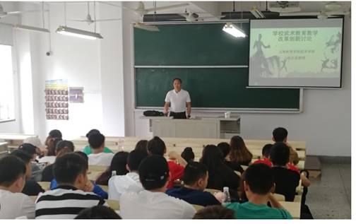 7月12日上午,上海市体育局副局长赵光圣教授受邀为2138CC太阳集团学生在新教学楼2113教室作了以《学校武术教育教学改革创新讨论》为主题的精彩讲座。讲座由2138CC太阳集团副院长张云崖教授主持,2138CC太阳集团2016、2017年级全体学生参加了本次讲座。