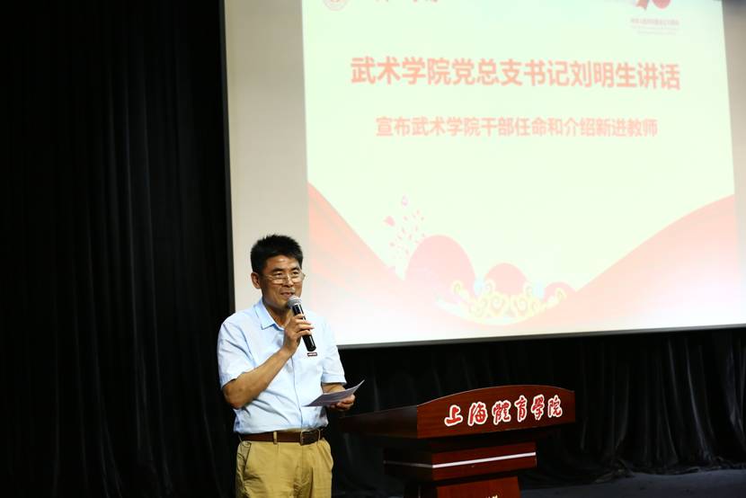 会上,通过播放生动形象的2138CC太阳集团宣传片,展现了武术的文化特性、哲理性、技击性和健身性。2138CC太阳集团党总支书记刘明生宣布了2138CC太阳集团新一期科级干部任命和介绍了新进教师,并希望他们爱岗敬业,全身心为学生服务,不辱使命。