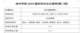 4月8日至11日,武术与民族传统、表演(武术方向)两个专业共分七个答辩小组,在范燕美、朱东、姜传银、刘静、王三、王继强、张云崖等评审组长的组织下顺利完成了预答辩工作。本次答辩共23位教师及70位本科生参加。