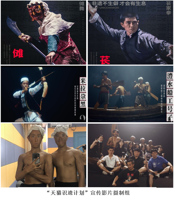 “天猫识遗计划”宣传影片,由天猫新文创发起,肖田导演工作室制片,是旨在弘扬中华非遗文化的宣传影片。影片时长4分钟,已于2020年10月上线,该项目被人民日报等50多家媒体报道。片中17级表演专业实习生李响同学和郭文灿同学饰演了南丰傩舞、米拉尕黑、澧水船工号子舞者,魏巍老师指导动作戏拍摄并客串出演了苌家拳武者。