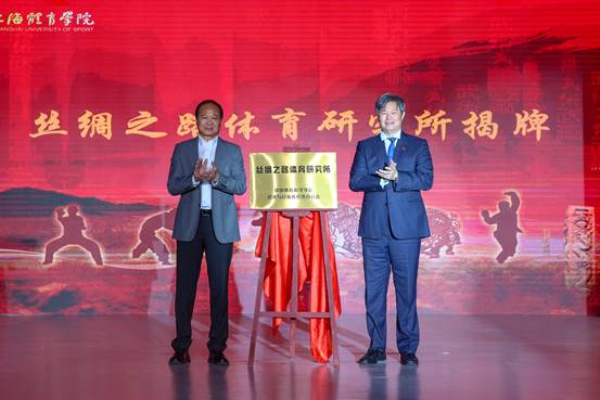 上海市体育局一级巡视员赵光圣、上海交通大学体育科研所所长孙麒麟教授为丝绸之路体育研究所揭牌。中国体育科学学会常务理事、战略规划与实施办公室主任祝莉,为李重申教授颁授名誉所长聘书,对其在丝绸之路体育研究方面取得的成绩给予高度评价,希望其引领丝绸之路体育研究所不断推进知识创新、理论创新、方法创新,为进一步增进丝绸之路沿线国家的文化交流、民心相通,打造文化包容的命运共同体做出新贡献。