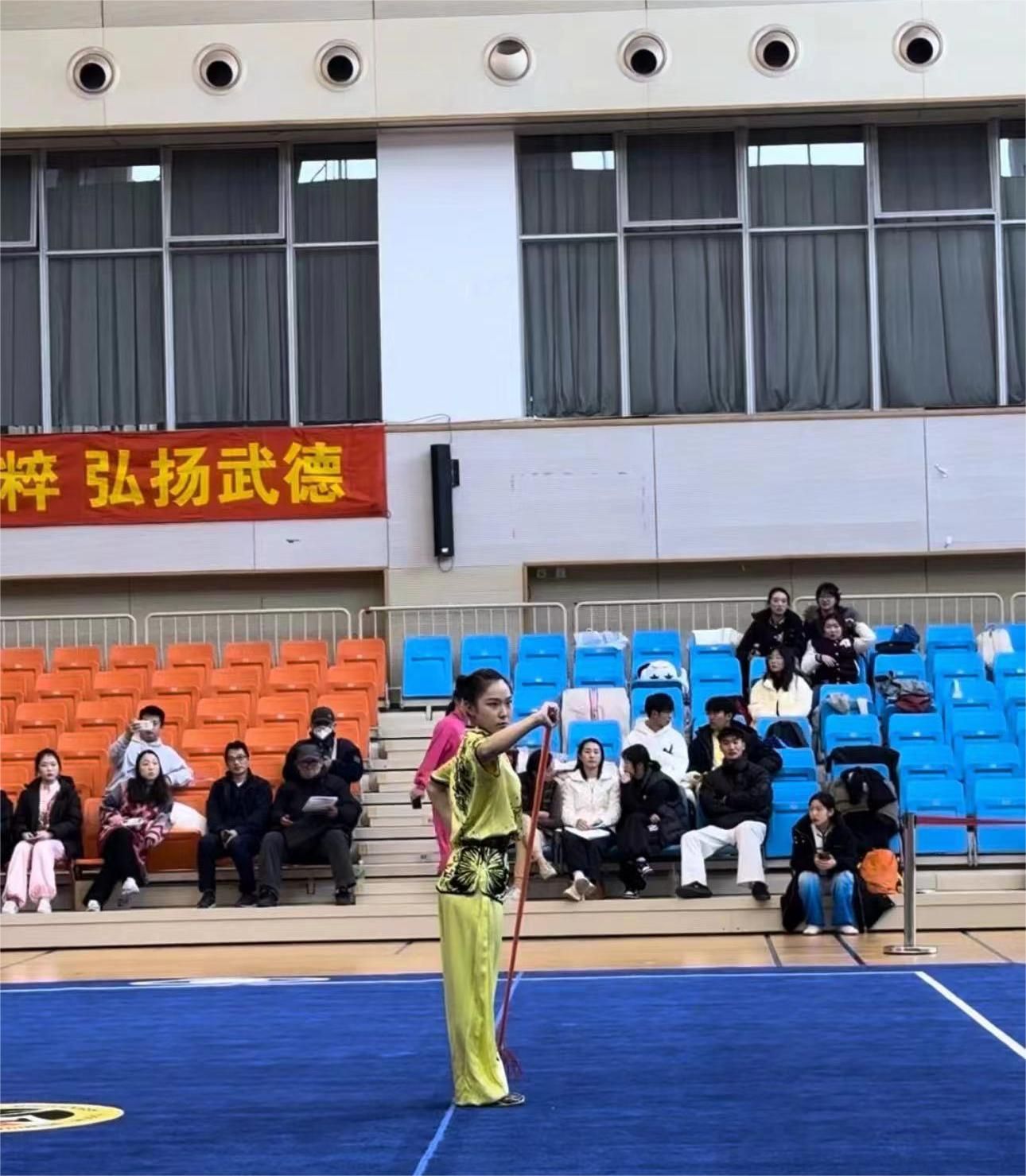 本次比赛,我院武术套路队选派10名运动员,参加了甲组(普通大学生组)和乙组(高水平大学生运动员组)两个组别,共计21个项目的激烈角逐。比赛场上,我院学子于赛场方寸之间,用出色的实力和稳定的发挥,全方位的展现了“手眼身法步、精神气力功”的武术八法,生动演绎了竞技武术挑战自我、求美求新的价值追求,尽显中华传统武术的独特魅力,用行动诠释了上体武术青年顽强拼搏、坚韧不拔的武术精神,彰显了作为上体绿瓦学子“身心一统,兼蓄竞攀”的精神风貌。