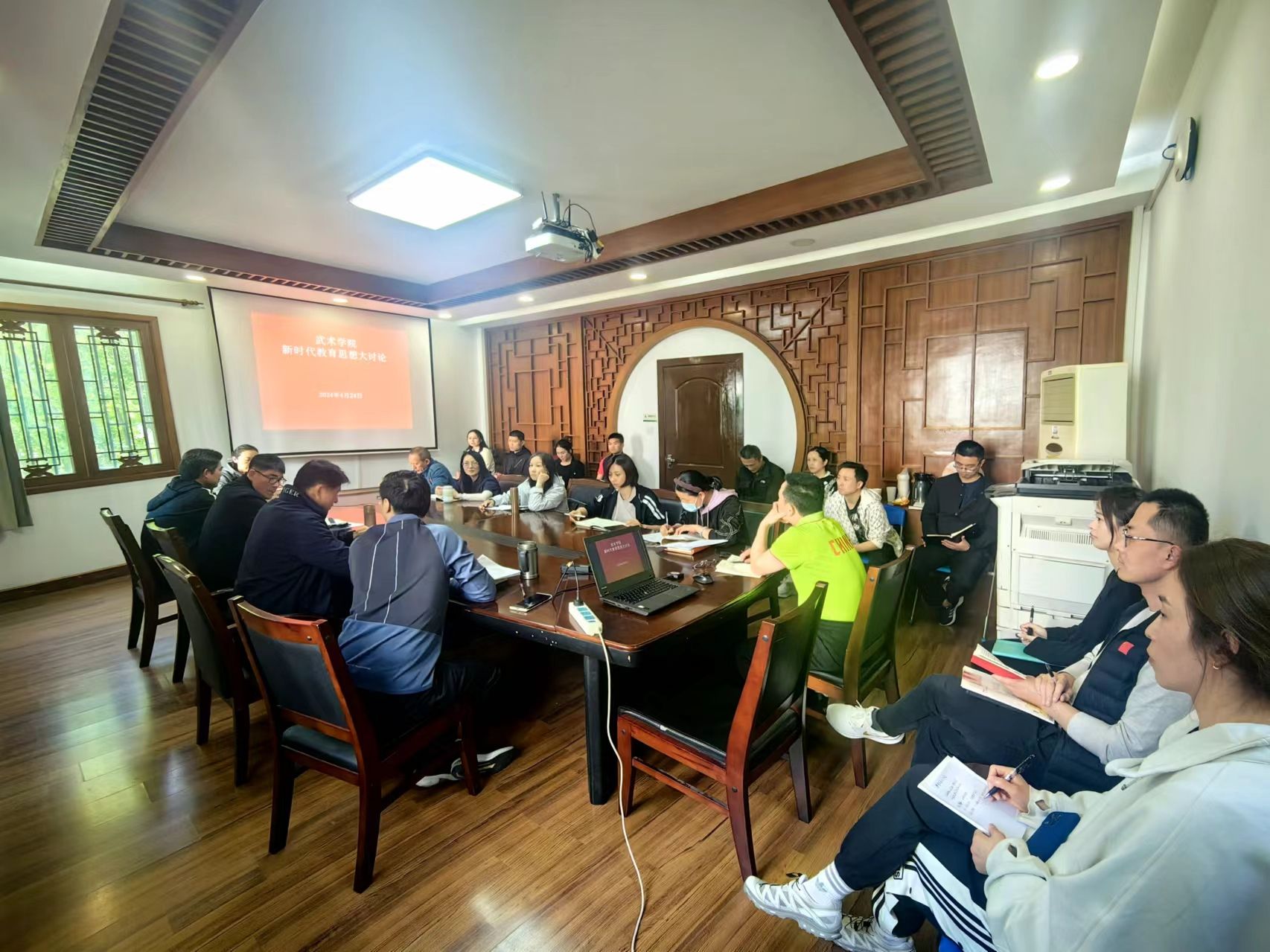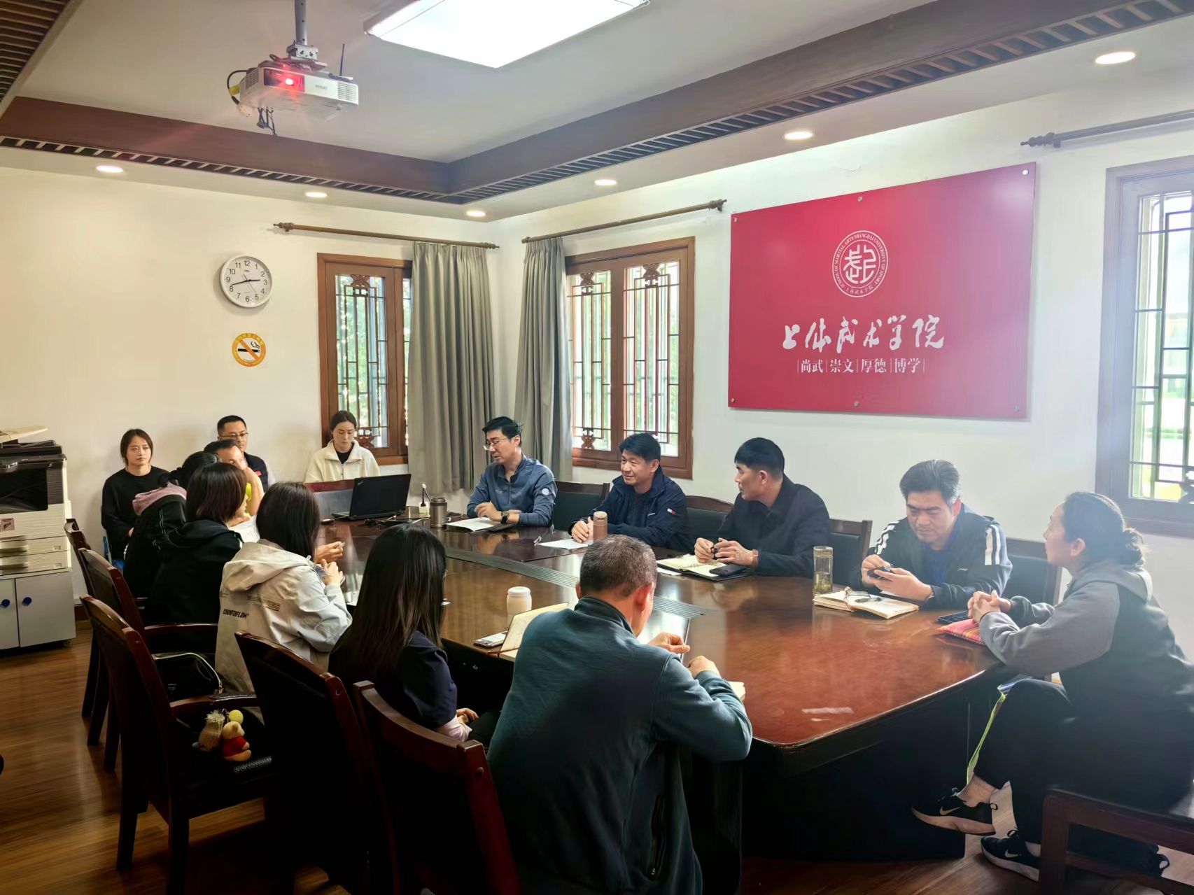 会议聚焦学校新时代教育思想大讨论工作的相关精神,以立德树人为根本任务,紧紧围绕建设世界一流体育大学的战略目标,以“凝聚共识、更新观念、开拓创新、加快发展”为目标,进一步突出“博学约礼、习武立德”的育人理念,持续优化教学效果,有效凝聚育人合力,不断提升教育质量,推动形成更加符合自身办学定位和办学特色的质量文化,实现武术拔尖创新人才培养的长远特色发展。