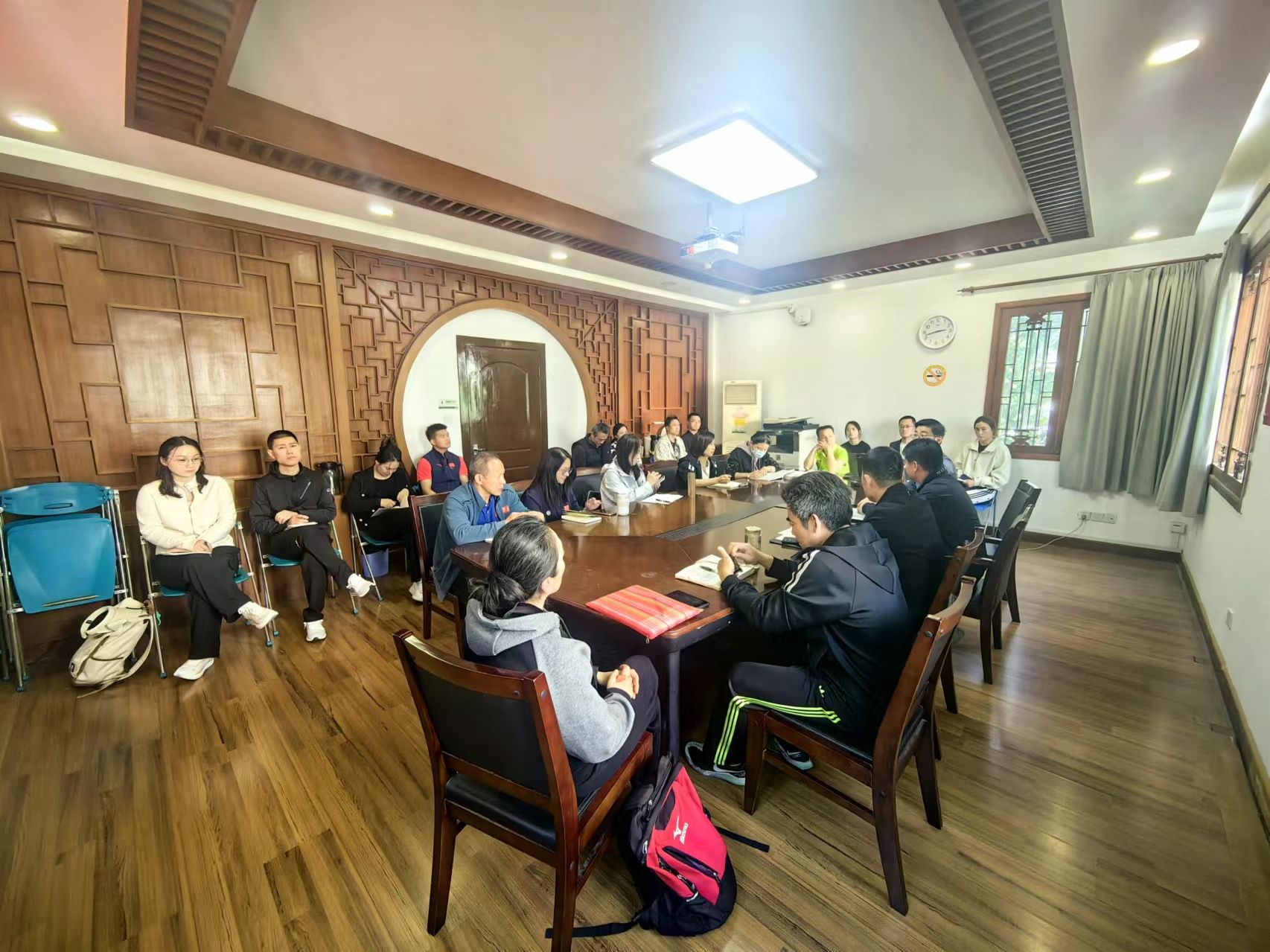 在研讨环节,学院副院长朱东、各教学团队负责人分别从学科专业发展、武术拔尖创新人才培养、师资队伍建设、教学质量监控、武术科学化训练、教师自我提升等方面深入交流研讨。同时,结合学院实际,从课程设置、师资配备、实践教学等多个角度分析了当前人才培养的优势与不足,并提出了具体的改进措施和发展规划。