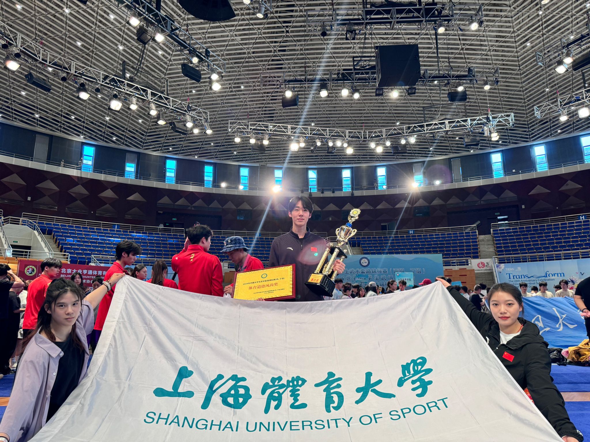 5月9日至5月16日,由中国学生体育联合会主办的2024年中国大学生武术套路锦标赛(丙组、丁组)暨第二届世界大学生武博运动会、第一届亚洲大学生武术锦标赛选拔赛在天津市武清区拉开帷幕,全国百所高校的千余名大学生运动员参加了比赛。本次比赛我校武术套路队共派9名运动员参赛,经过激烈的比拼,武术套路队共获得6块金牌4块银牌6块铜牌以及5项前6名的优异成绩,同时荣获男子丁组团体第三名和“体育道德风尚奖”荣誉称号。