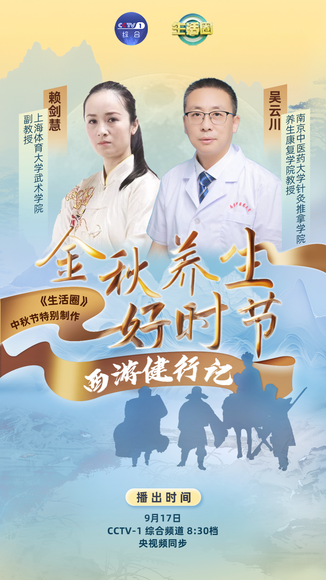 9月17日,农历八月十五,是中国四大传统节日之一的中秋节。中秋节当天,我院非遗体育与健康养生教学团队赖剑慧副教授受邀为央视综合频道CCTV-1《生活圈》栏目录制的中秋特别节目“金秋养生好时节·西游健行记”播出,用健身气功专业知识为健行之旅增添健康与文化的亮色。