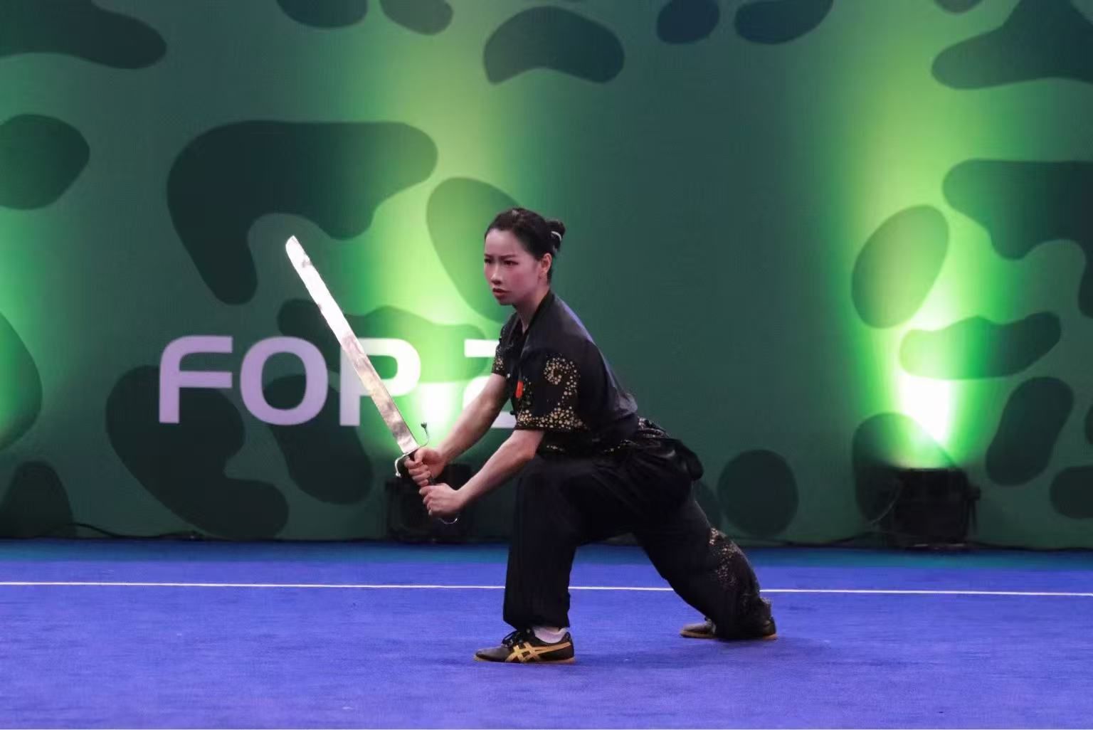 比赛中,张雅玲以饱满的精神状态、高超的技术表现,高水平地完成整套动作演练,她的招式行云流水,刀法刚猛凌厉,步型稳健扎实,充分展示了南刀的独特魅力与内涵,赢得了现场观众的阵阵掌声和裁判的高度认可,最终以优异的成绩斩获女子南刀金牌。作为上体武术学子,她用坚韧不拔、勇往直前的意志品质,为国家、为学校争得了荣誉,践行了“身心一统、兼蓄竞攀”的校训和“德技兼修、文武并进”的院训,生动诠释了上体武术健儿锐意进取、追求卓越的精神风貌。