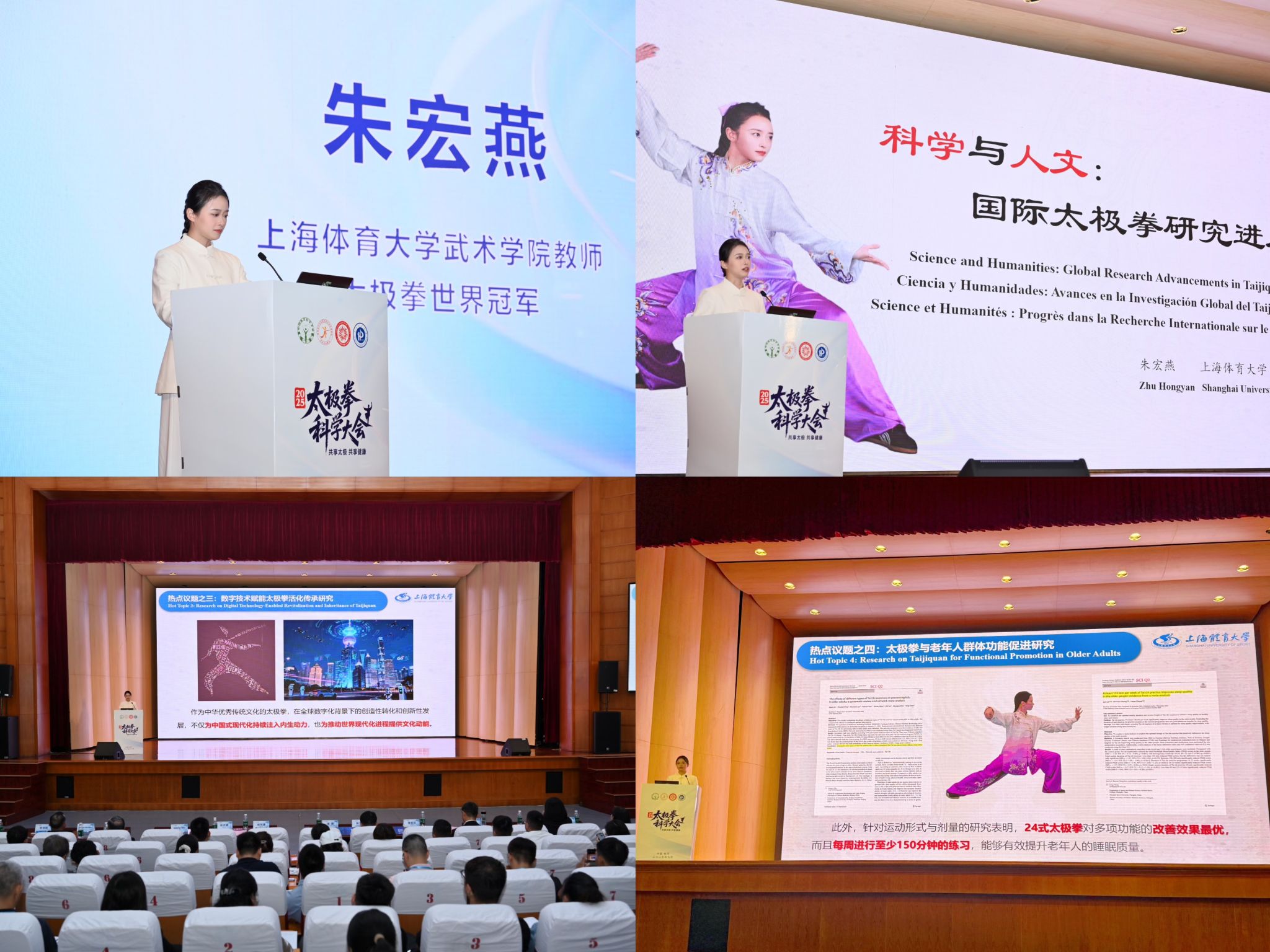 我院青年教师、太极拳世界冠军、博士研究生朱宏燕在上午的大会主旨报告环节,代表科研团队以《科学与人文:国际太极拳研究进展》为题,报告了当前国际太极拳研究的前沿进展,提出太极拳在促进人类健康、推动文化交流方面的独特价值,为太极拳的科学化与国际化发展提供了新思路及新走向。