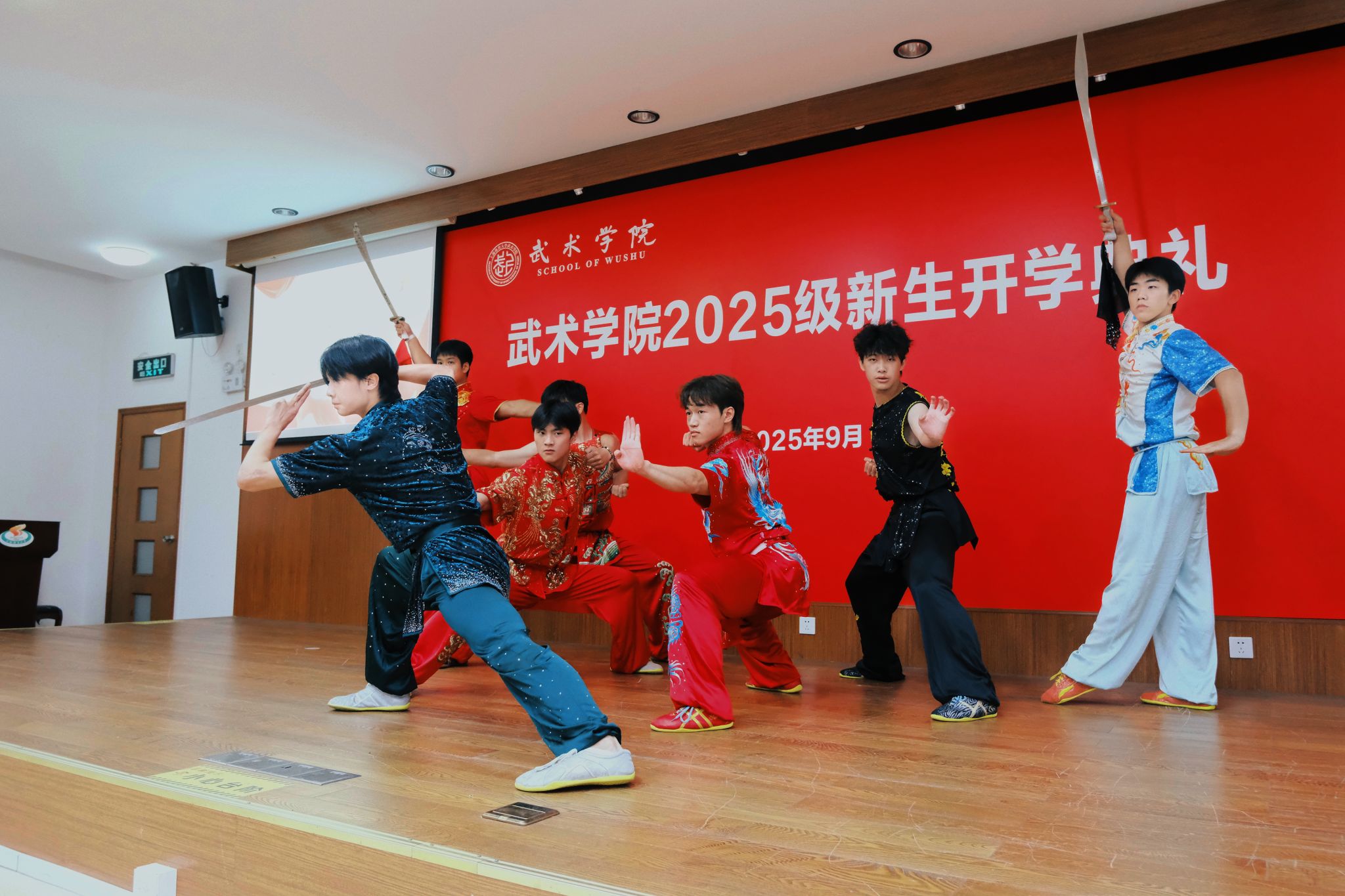 随后,2025级新生登台展示武术技能。他们招式铿锵、意气风发,以精湛技艺和饱满精神展现了武院学子的卓越风采,为在场师生奉献了一场精彩的视觉盛宴。