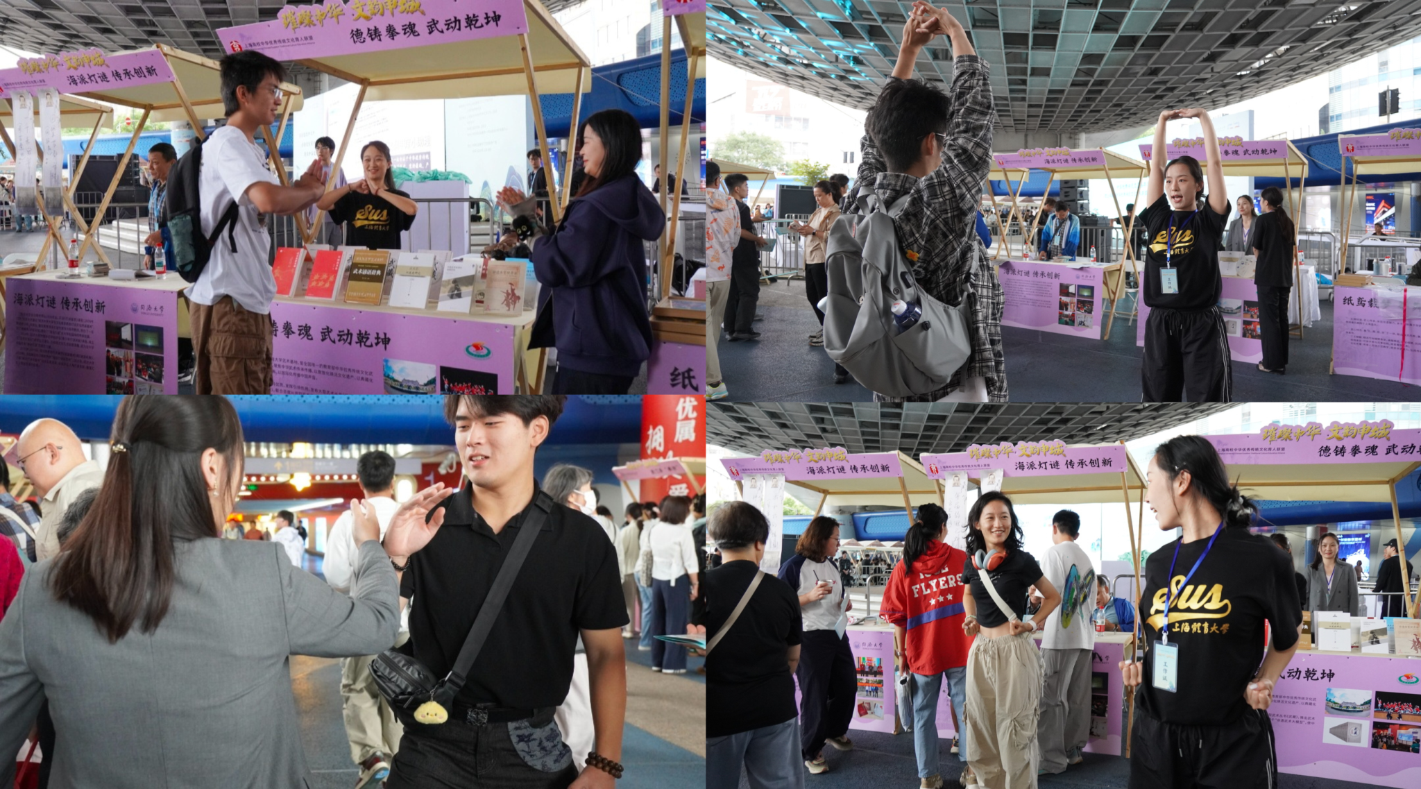 10月18日,“璀璨中华·文韵申城”中华优秀传统文化嘉年华暨上海高校中华优秀传统文化育人联盟集中展示活动在杨浦区五角场下沉式广场举行。本次活动由上海市教卫工作党委、上海市教委指导,上海高校中华优秀传统文化育人联盟、同济大学、杨浦区委宣传部、杨浦区文明办、大中小学思想政治教育一体化建设创新发展中心共同主办。我校教育部中华优秀传统文化传承基地(武术)(以下简称“基地”)通过书香展台、武艺展演等形式,为市民创设了融合趣读经典、沉浸体验、互动交流为一体的全天候、流动式城市武术文化空间。