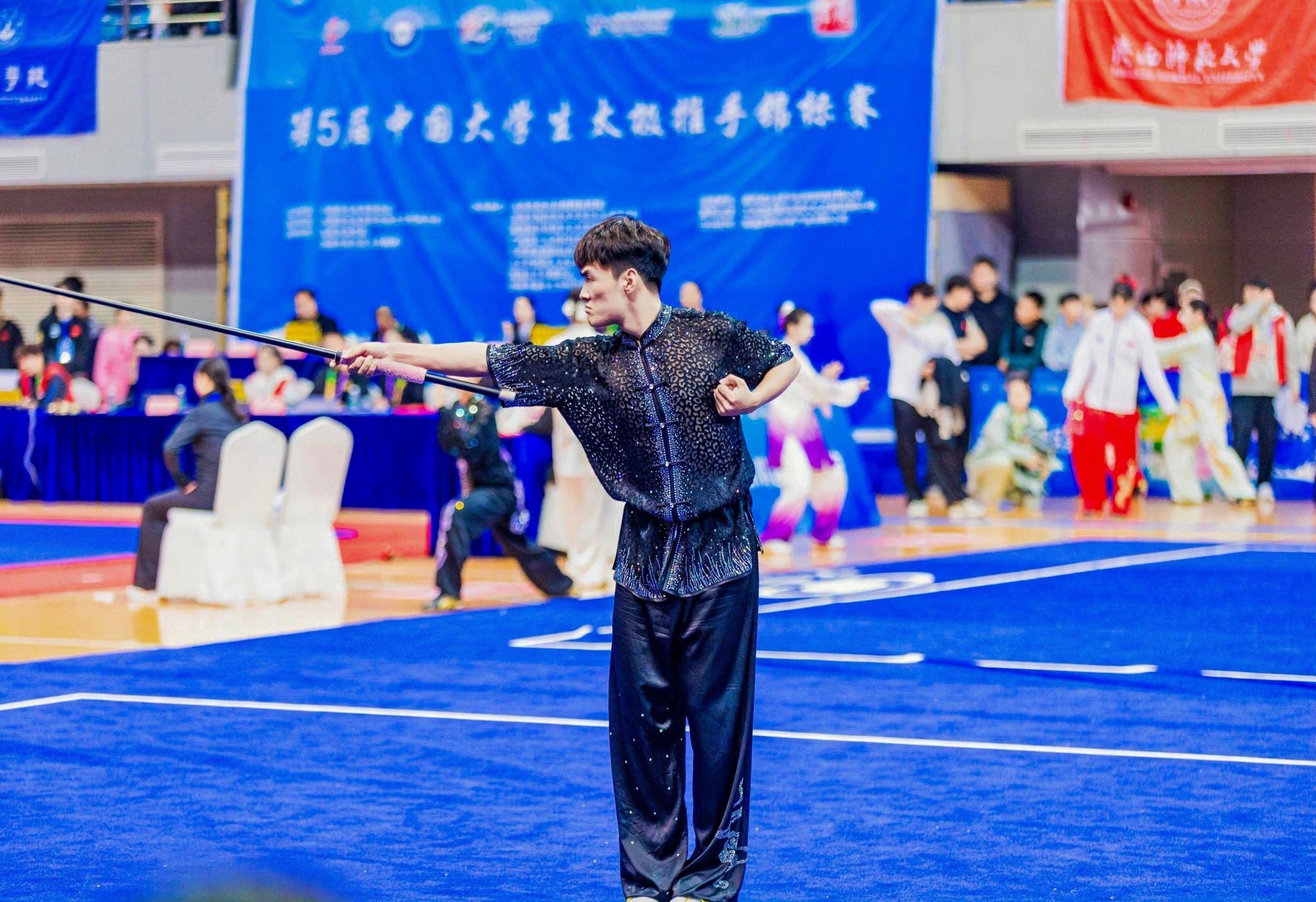 在拳术项目比赛中,我院学子动作刚劲有力、节奏明快,腾空跳跃与落地稳扎的完美衔接赢得裁判一致高分。在剑术的赛场上,我校运动员以静制动、以柔克刚,器械与身形的协调配合尽显武术神韵,最终摘得桂冠。在双人对练项目中,队员们高水平地完成整套动作,腾挪翻转间默契十足,一招一式精准到位,成功将金牌收入囊中。充分展现了我院武术队扎实的基本功与全面的竞技实力。比赛中,场下队友之间相互鼓励、呐喊助威,全体队员在高强度对抗中顽强拼搏,严格遵守赛事纪律,展现了良好的体育道德风尚。