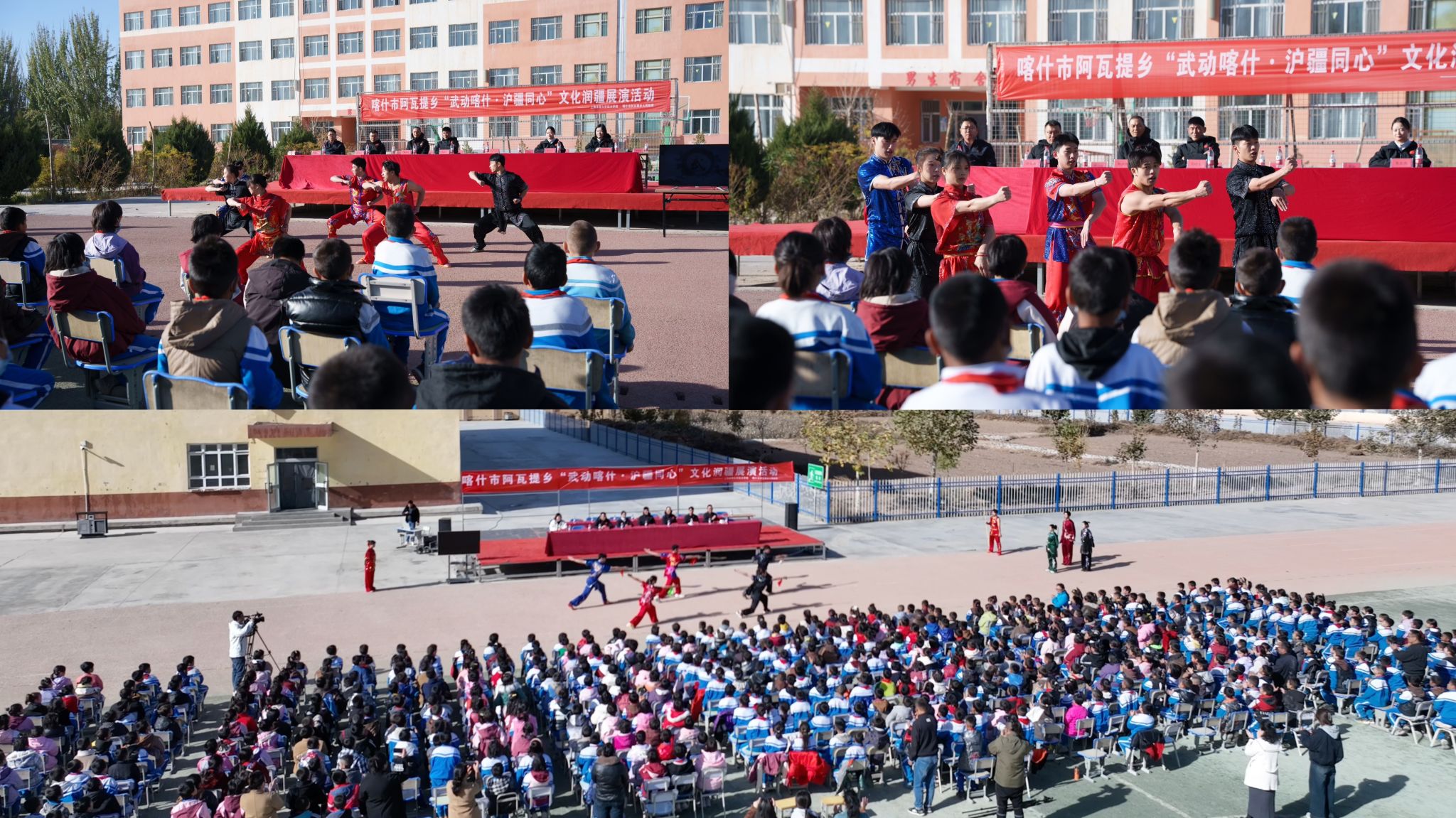 座谈会后,训练场上的武术展演将本次交流推向高潮。沪疆学子以武会友,共展中华武术魅力。“这场交流让我看到了中华武术的多元魅力,更感受到了各民族青年同心共筑中国梦的凝聚力。”喀什大学学生张佐赫感慨道。