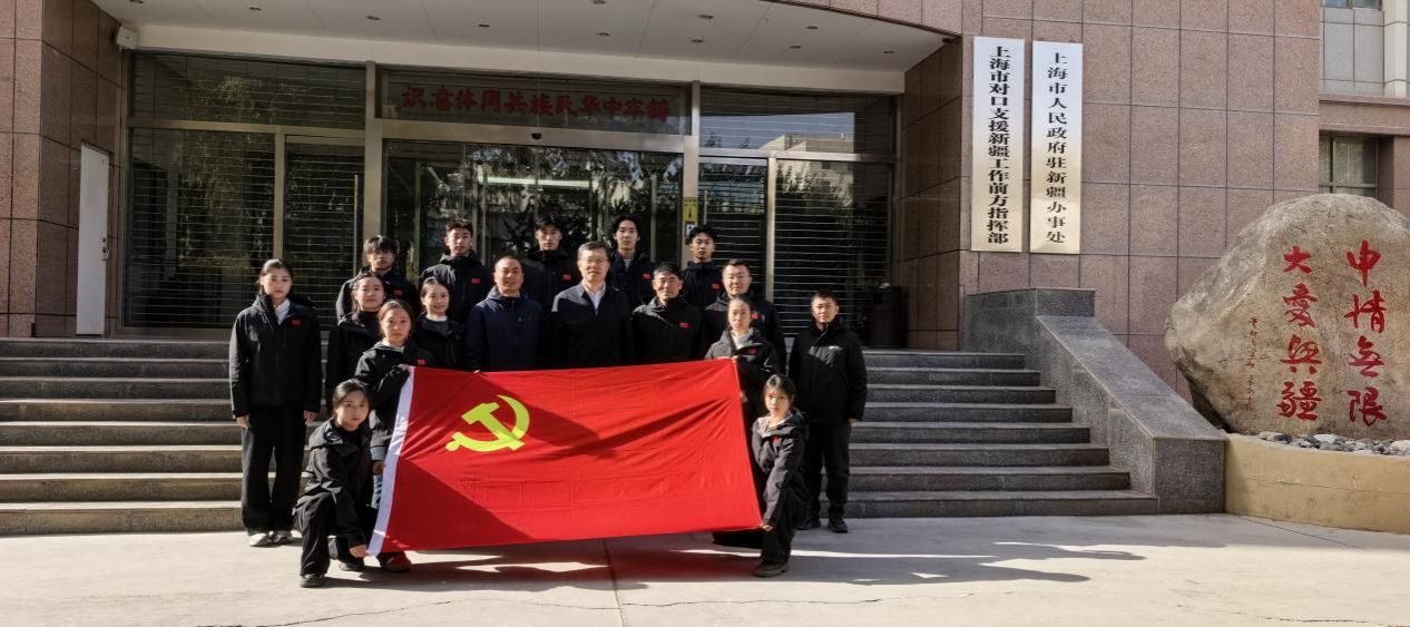 实践团还专程走访了上海援疆前方指挥部,聆听了一堂“行走的思政课”。师生与正在此担任副总指挥的母校副校长王陈面对面交流,聆听援疆路上的点滴故事,深切感受党的关怀如何通过一批批援疆干部浸润边疆、温暖人心。一幅幅纪实图片、一组组帮扶数据,生动呈现上海援疆在教育、医疗、产业等多领域的扎实成果,深深触动了在场师生。通过这堂特殊的思政课,同学们对“国之大者”有了更全面的理解,对家国情怀与使命担当也有了更加自觉的体认与追求。