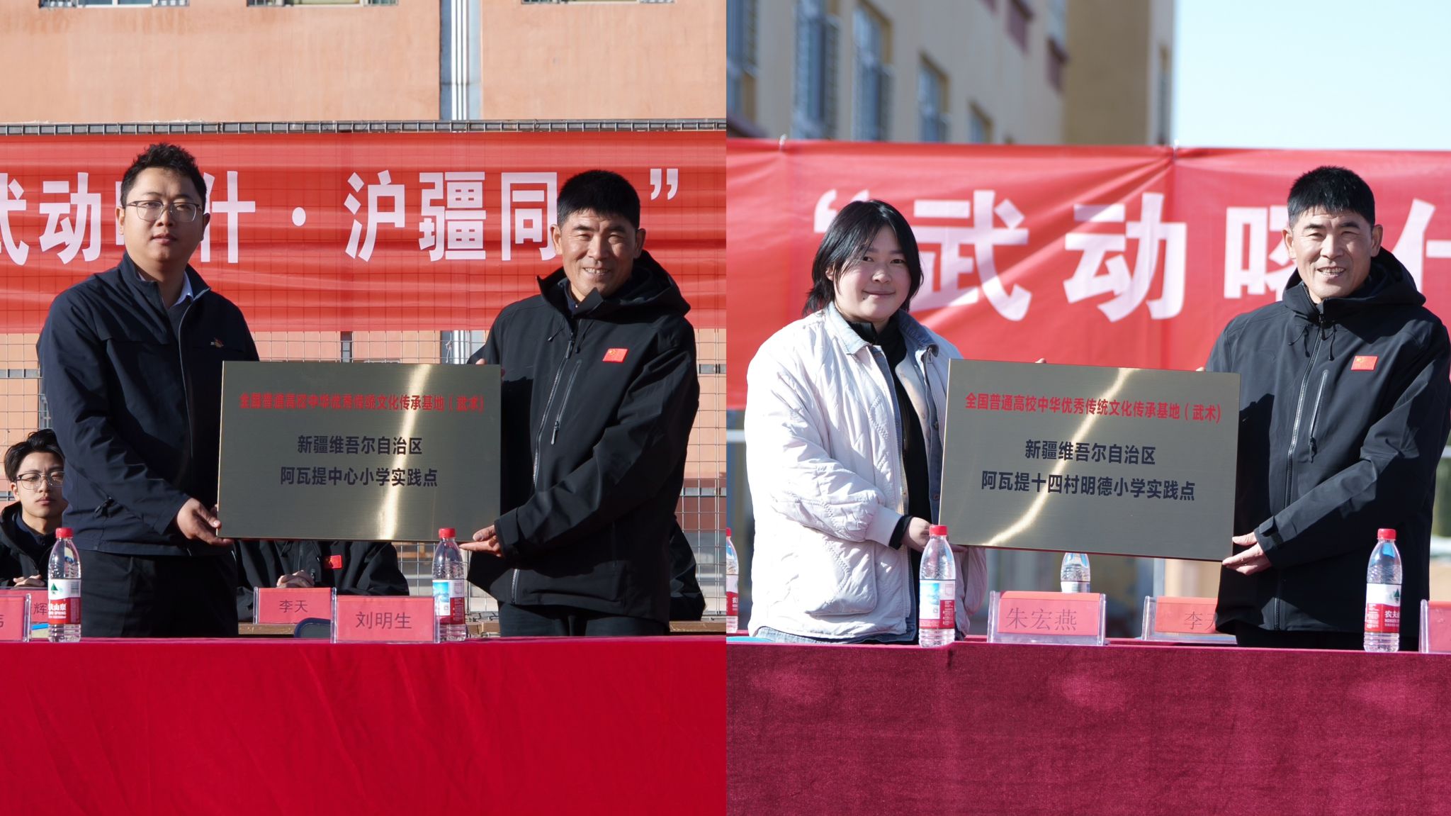 11月6日,实践团走进喀什市阿瓦提乡中心小学与十四村明德小学,举行“全国普通高校中华优秀传统文化传承基地(武术)实践点”授牌仪式,并向两校赠送《武术与民族传统体育专业课程思政教学指南》《武术谚语辞典》,播撒武术文化的种子,助力边疆教育发展。