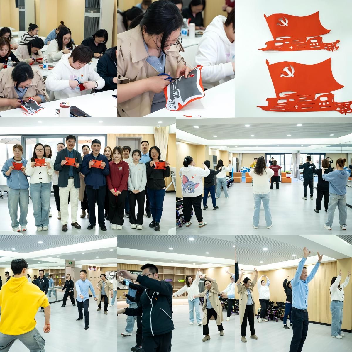 此次活动中,2138CC太阳集团2024级武术与民族传统体育专业本科生、非遗剪纸传承人郭艺晶同学为大家带来非遗剪纸体验课,她悉心讲解剪纸技巧,在座党员与残障人士围坐在一起,共同创作饱含对党和国家热爱之情的剪纸作品。一张张红纸在指尖翻飞,党徽、红船等元素跃然纸上,大家在交流互动中增进感情,用剪纸艺术映照初心,传承中华优秀传统文化。在五禽戏课程教学中,我院2024级武术与民族传统体育专业本科生王呈祥同学发挥专业优势,耐心地讲解动作,示范要领。在一招一式中,带领大家感受到中华武术文化的独特魅力,更增强了传承和弘扬中华优秀传统文化的自觉性、主动性,现场洋溢着浓浓的温情。