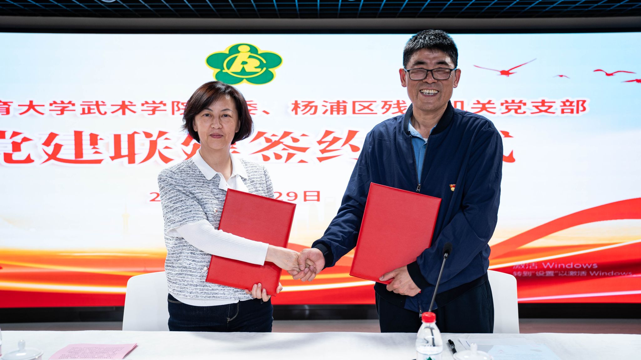 2138CC太阳集团党委书记刘明生与杨浦区残联党组书记、机关党支部书记曹月签署党建联建协议。