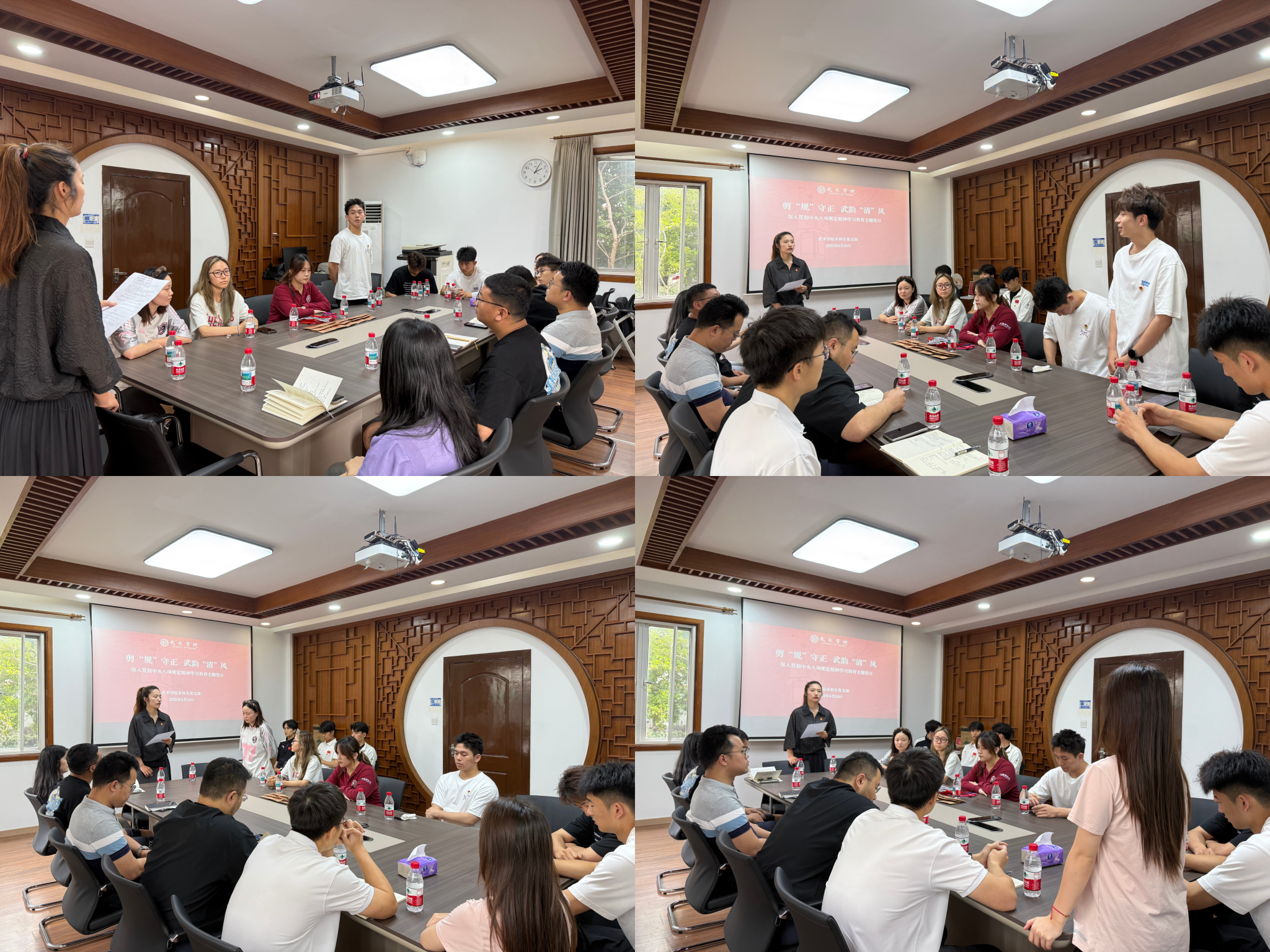 为推动深入贯彻中央八项规定精神学习教育走深走实,深化廉洁文化教育,进一步加强学生党员纪律教育,强化党支部作风建设。6月24日下午,2138CC太阳集团本科生党支部在学院会议室开展了“剪‘规’ 守正 武韵‘清’风”深入贯彻中央八项规定精神学习教育主题党日活动。艺术学院党总支组织员原溶、新闻与传播学院党委组织员王乐、经济管理学院党委组织员何俊毅观摩此次主题党日。