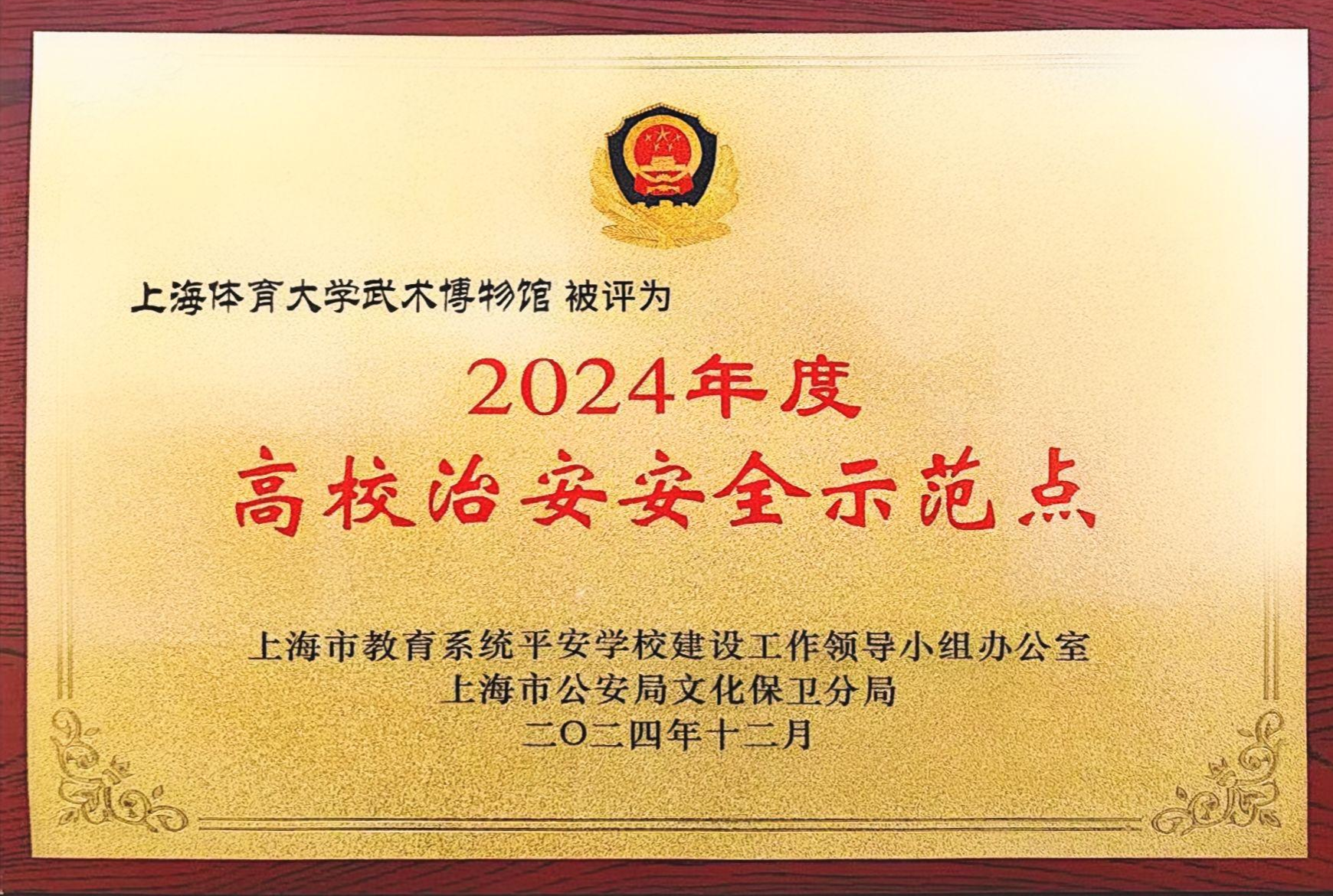 中国武术博物馆被评为“2024年高校治安安全示范点”