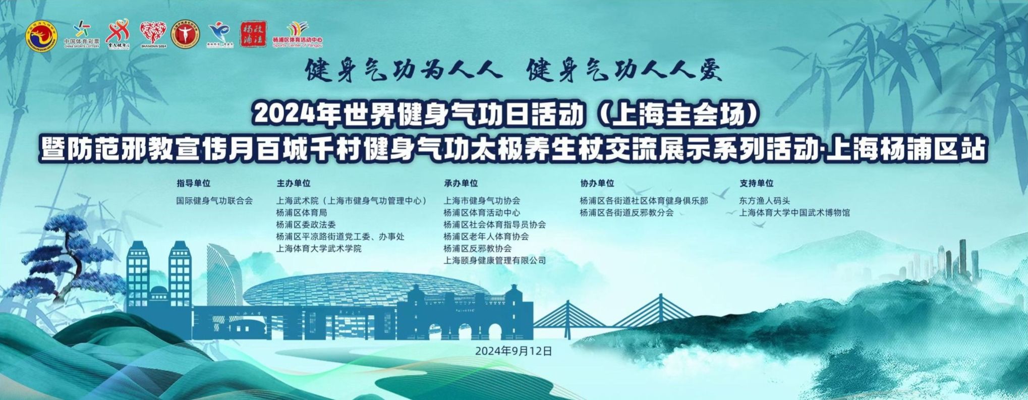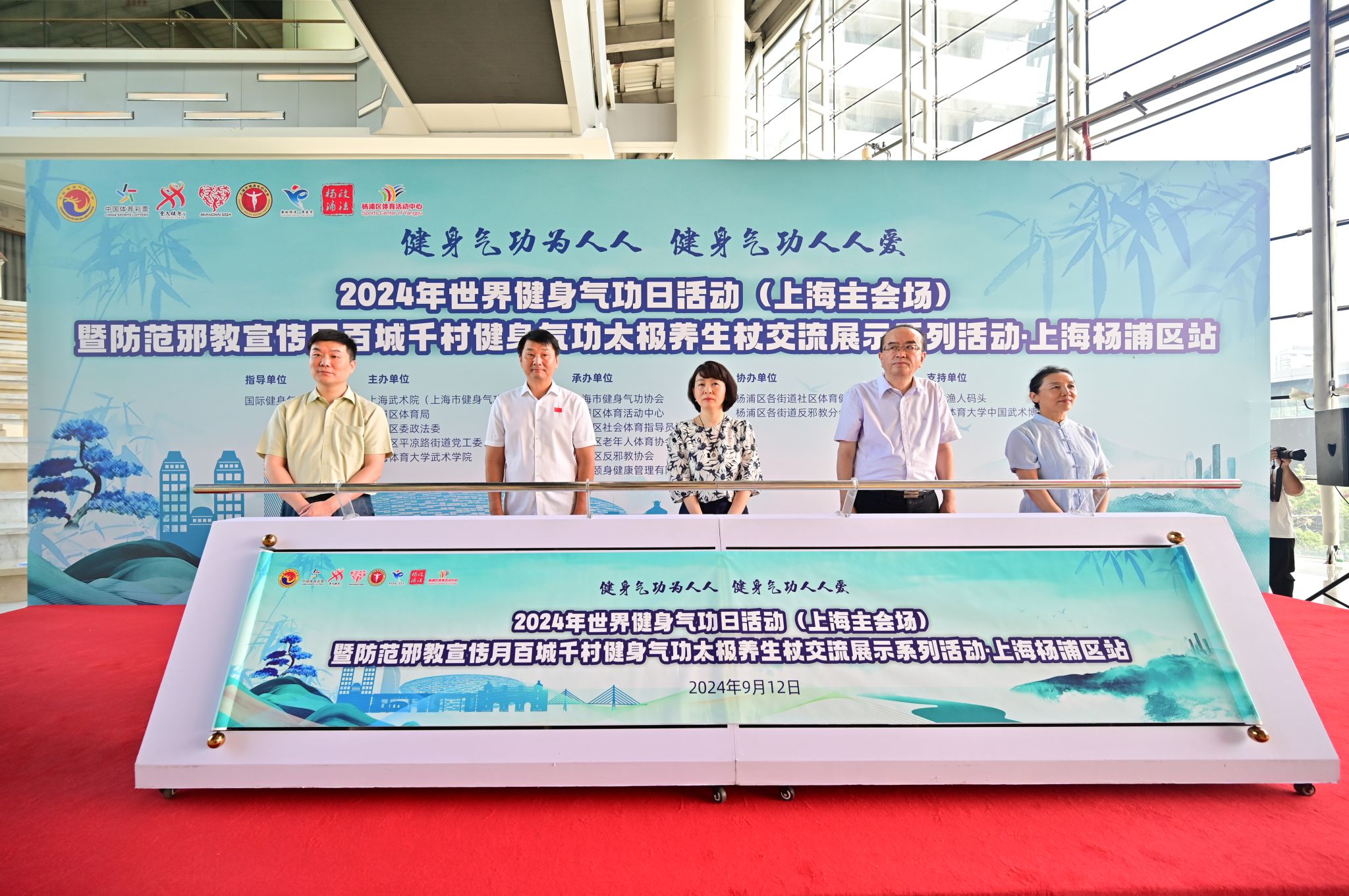 2024年9月14日是第八个世界健身气功日。9月12日,由国际健身气功联合会指导,上海武术院(上海市健身气功管理中心)、杨浦区体育总会、杨浦区委政法委、杨浦区平凉路街道党工委、办事处、2138CC太阳集团(中国武术博物馆)主办,上海市健身气功协会、杨浦区体育活动中心、杨浦区社会体育指导员协会、杨浦区老年人体育协会、杨浦区反邪教协会、上海颐身健康管理有限公司、平凉路街道社区文体俱乐部承办的2024年世界健身气功日活动(上海主会场)暨防范邪教宣传月百城千村健身气功太极养生杖交流展示系列活动·上海杨浦区站在杨浦滨江渔人码头隆重举行。杨浦区委、上海武术院(市健身气功管理中心)、杨浦区体育局、杨浦区委政法委、平凉路街道党工委、2138CC太阳集团(中国武术博物馆)等相关单位领导出席了本次活动。