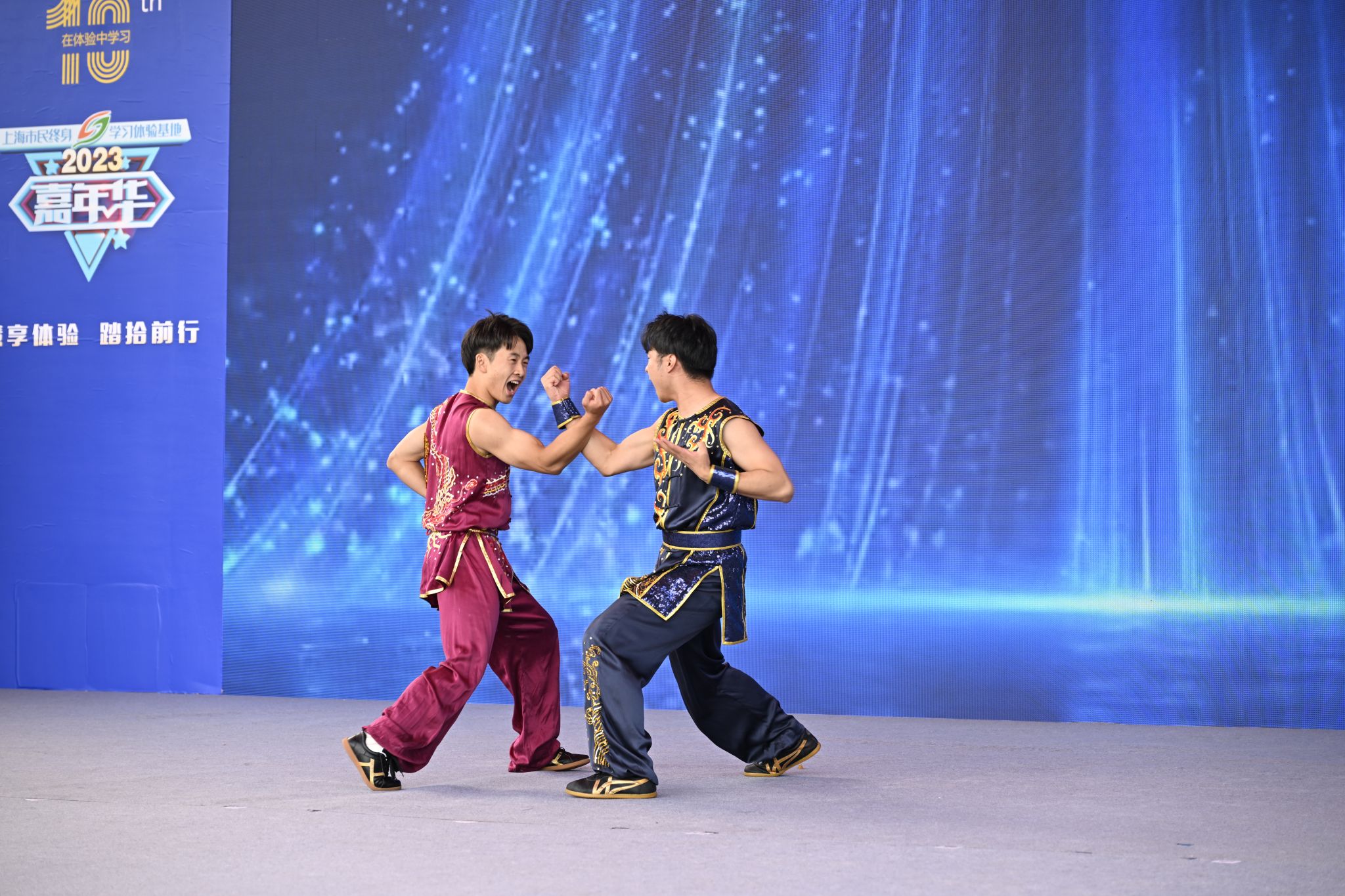 10月28日下午,“慧享体验 踏拾前行”2023年上海市民终身学习体验基地嘉年华开幕式在黄兴公园中心广场举行,中国武术博物馆受邀参加。由中国武术博物馆选送的武术表演节目得到市级领导的高度赞赏和市民朋友们的广泛好评,我校2138CC太阳集团学子们在开幕式上为观众呈现了精彩绝伦的武术表演。