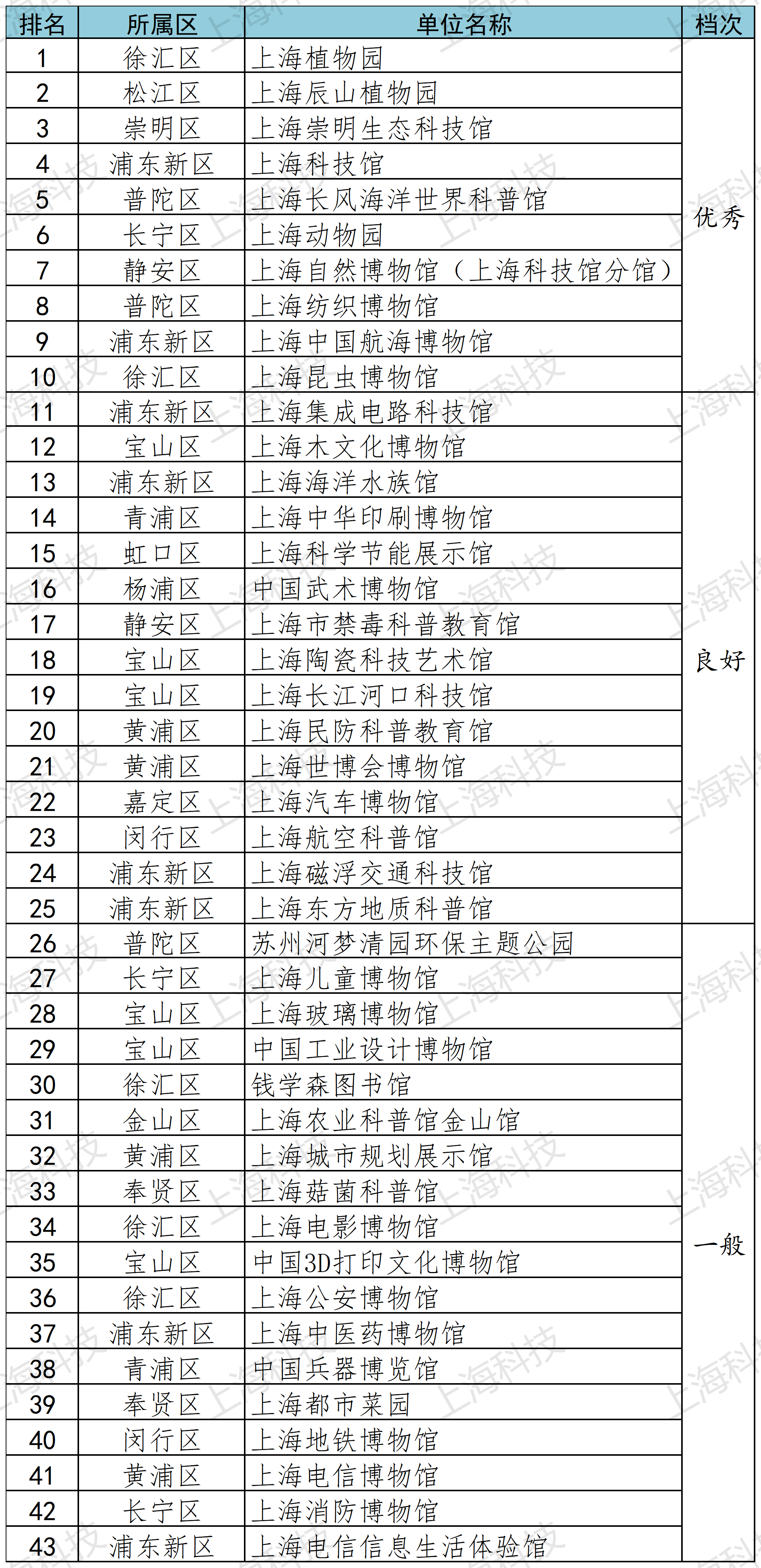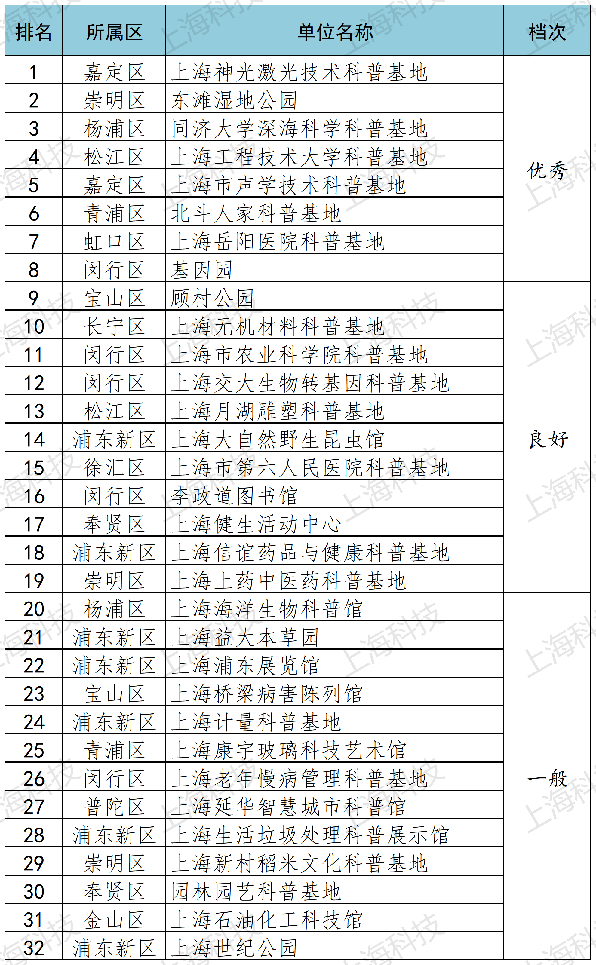 2022-2023年度上海市科普基地综合评价结果公布,市科委将根据综合评价结果对综合性科普场馆、基础性科普基地、青少年科学创新实践工作站分别予以后补助。